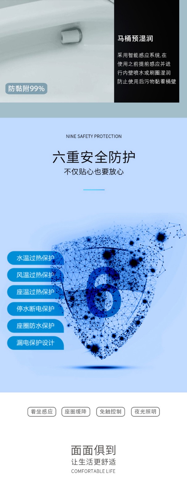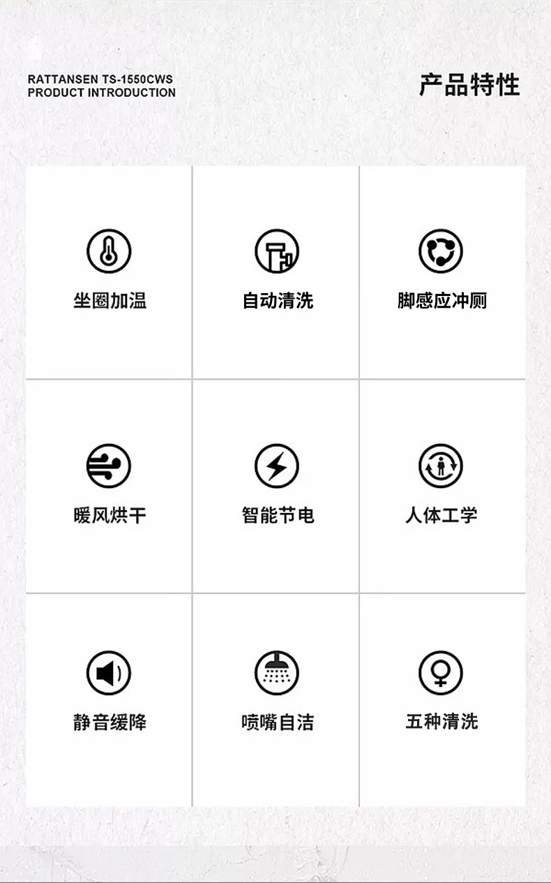 7、座溫、風溫、水溫、水壓5檔調節(jié)、