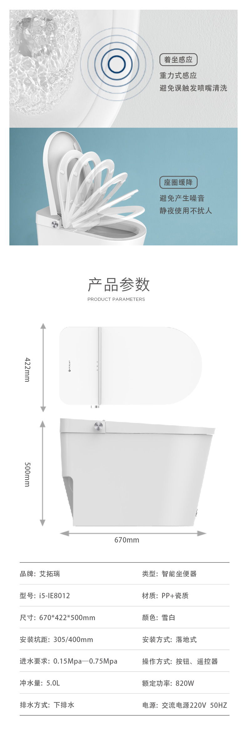 產(chǎn)品型號:iE8012 智能馬桶